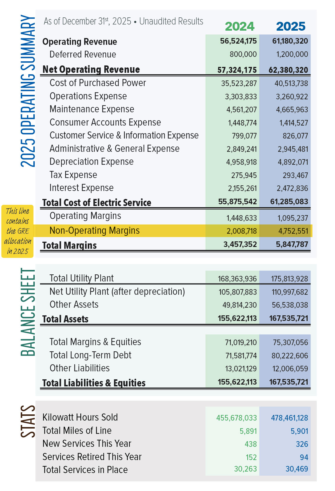 This month, I want to draw your attention to the cooperative’s 2025 Operating Summary, which you’ll find below this article. This summary gives a quick look at LREC’s assets, liabilities, and other financial details — basically, how we’re doing as a cooperative. It also shows our total margins for the year.